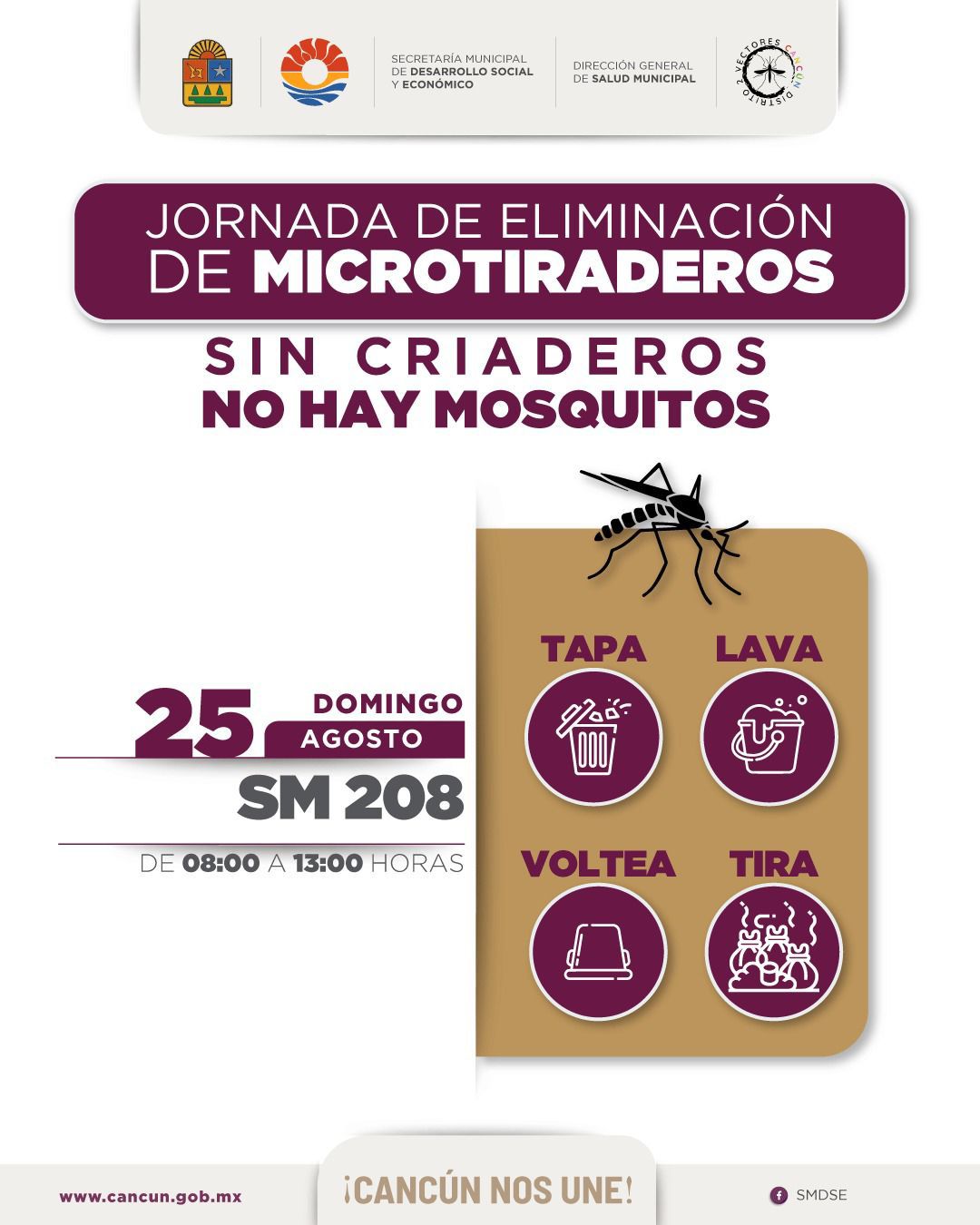 PODER Y CRÍTICA | REDACCIÓN | Autoridades del Ayuntamiento de Benito Juárez, a través de la Secretaría Municipal de Desarrollo Social y Económico y la Dirección General de Salud, invitan a las y los benitojuarenses a participar en la tercera edición de la “Jornada de eliminación de microtiraderos”, que se llevará a cabo el domingo 25 de agosto en la Supermanzana 208.