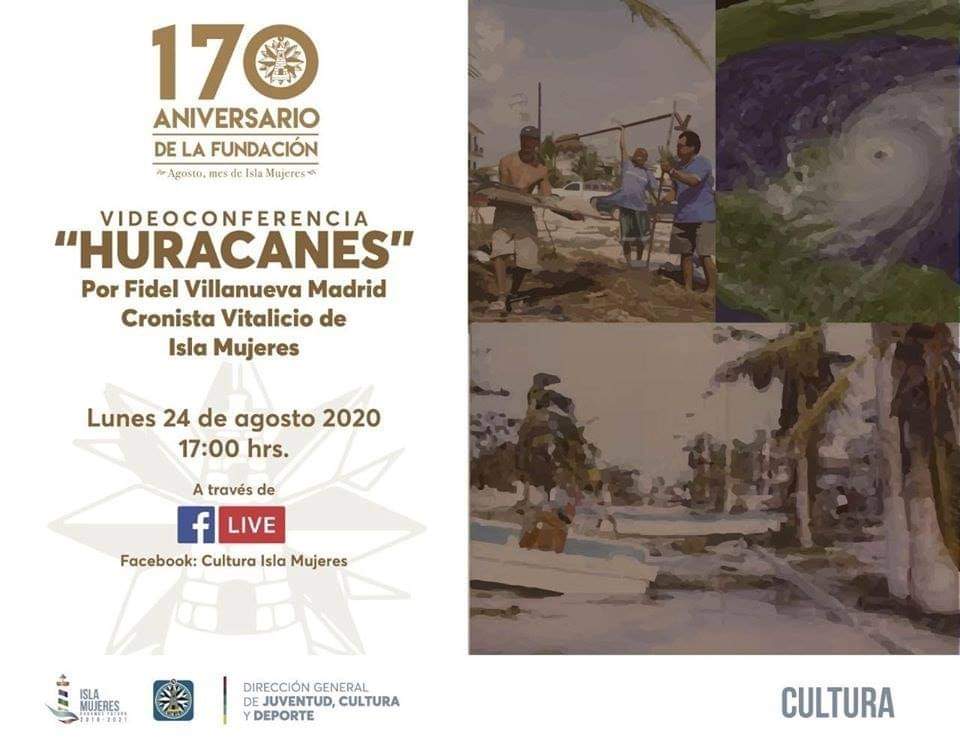 Isla Mujeres, Q. Roo, Lunes 24 de Agosto de 2020, poderycrítica.- Como parte de las actividades conmemorativas del 170 aniversario de la fundación del pueblo de Dolores hoy Isla Mujeres, el gobierno que encabeza Juan Carrillo Soberanis, a través de la dirección general de Juventud, Cultura y Deportes, invita a la población a conectarse a la videoconferencia “Huracanes”.