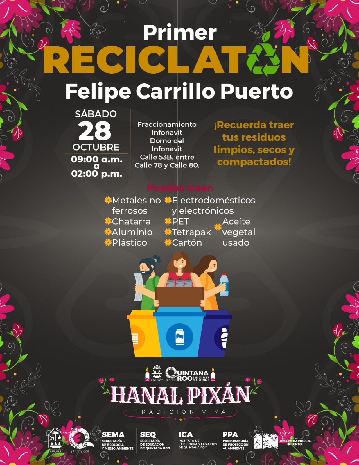 PODER Y CRÍTICA | REDACCIÓN | Para fortalecer la conciencia ambiental y participación ciudadana, que promueva prácticas de reciclaje sostenibles y la construcción de comunidades más respetuosas con el medio ambiente, el Gobierno del Estado a través de la Secretaría de Ecología y Medio Ambiente (SEMA), en coordinación con el Ayuntamiento de Felipe Carrillo Puerto, realizarán el primer Reciclatón el próximo sábado.