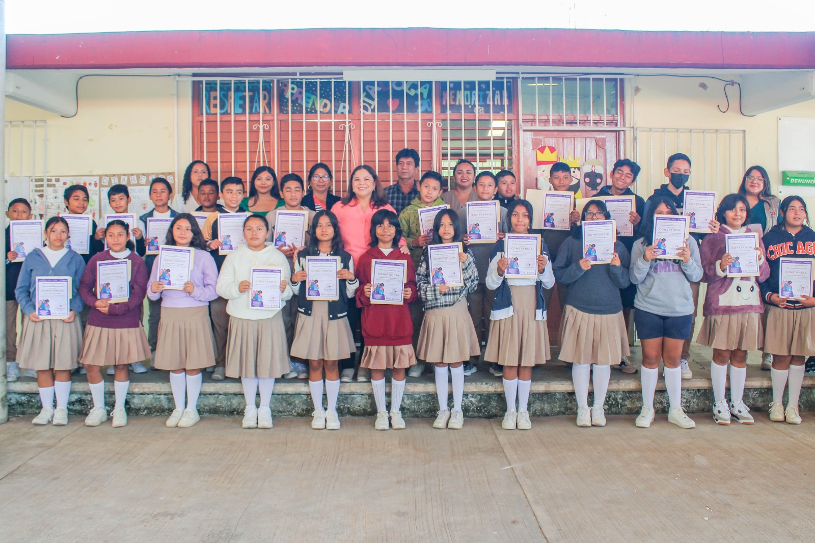Al acudir al centro escolar a entregar constancias de participación a las y los estudiantes, agradeció a nombre de la gobernadora Mara Lezama Espinosa al personal docente por su compromiso para erradicar todas esas conductas que son contrarias a la paz y al desarrollo integral de las juventudes.
