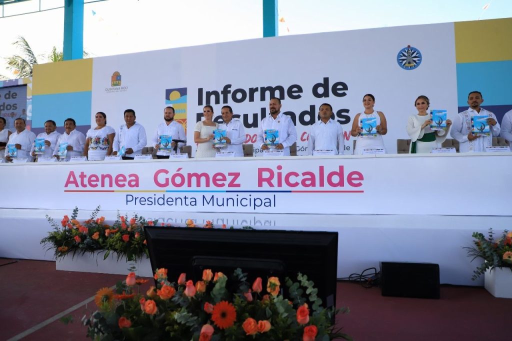En su Informe, presentado durante la 8ª Sesión Pública y Solemne de Cabildo en el Domo Bicentenario de la colonia “La Gloria”, Atenea Gómez destacó también la rehabilitación y mantenimiento a la totalidad de parques y canchas deportivas del municipio, para que las familias isleñas puedan disfrutar de espacios dignos y seguros.