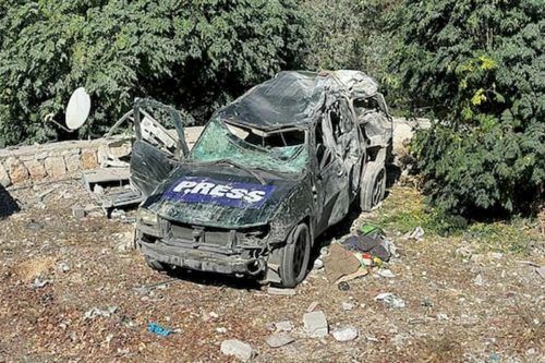 El ataque de las 3:00 de la mañana dejó el sitio en ruinas, con autos marcados con la palabra “PRENSA” volcados y cubiertos de polvo y escombros y al menos una antena parabólica para transmisión en vivo totalmente destruida.