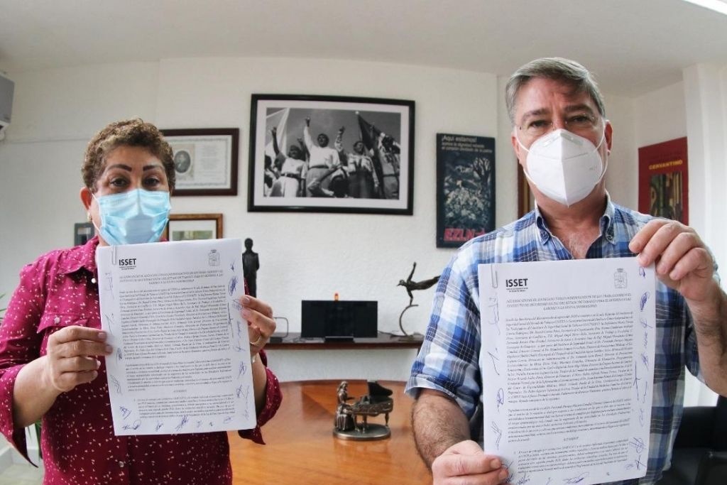 Tabasco, 28 agosto; poderycritica.-Durante este viernes el titular del Instituto de Seguridad Social del Estado de Tabasco (ISSET), el Dr. Fernando Enrique Mayans Canabal y la secretaria general del Sindicato Único Independiente de Trabajadores del Instituto de Seguridad Social del Estado de Tabasco (SUITISSET), María Teresa Hernández Rodríguez, firmaron el acuerdo que establece el regreso de los trabajadores a sus actividades en la nueva normalidad, que garantizará una mejor atención a los derechohabientes.