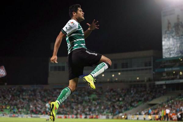En 2013, emigró de La Noria para ser fichado por Santos, escuadra con la que paladeó el éxito, adjudicándose la Copa en el Apertura 2014 y Liga en el Clausura 2015. En la ida de la Final ante los Gallos Blancos de Querétaro, marcó un póker.