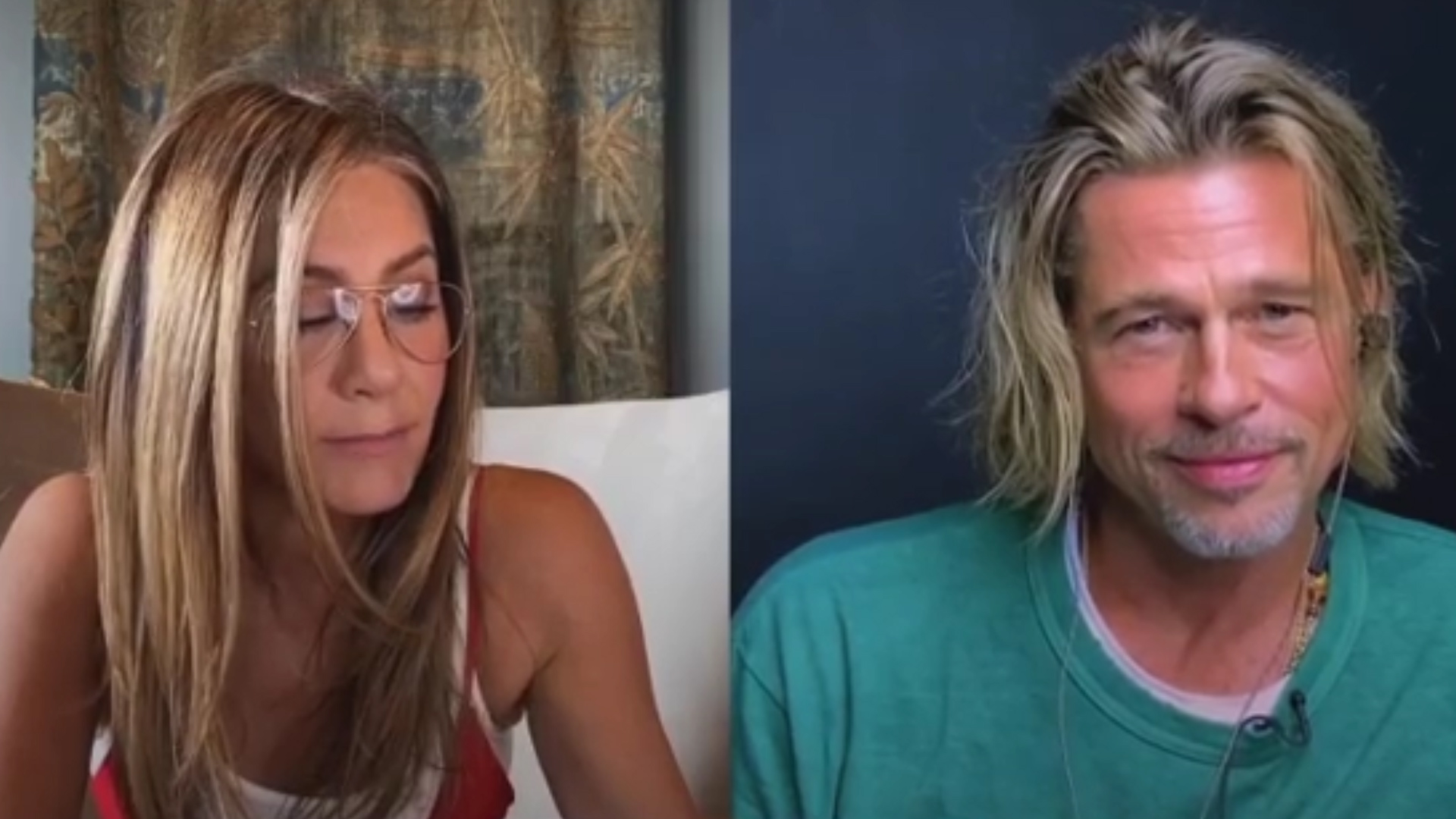 Al inicio de la videollamada, se ve cómo Pitt y Aniston se saludan de manera profesional.