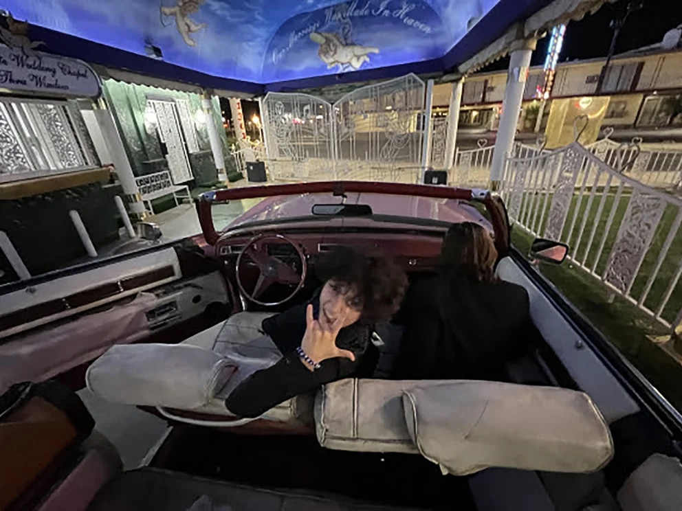 Agregó que llegaron a la pequeña capilla blanca de la boda a medianoche: ”Amablemente se quedaron abiertos hasta tarde unos minutos, nos dejaron hacer fotos en un Cadillac rosa descapotable, evidentemente utilizado en su día por el mismísimo rey”.