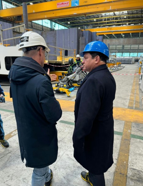 Díaz Mena fue recibido por el alcalde en funciones de Monfalcone, Italia, Antonio Garritani, durante su visita al astillero de Fincantieri, uno de los más destacados del mundo. En el encuentro, ambas autoridades dialogaron sobre las posibilidades y beneficios que representa un proyecto de esta magnitud para el desarrollo económico y social de sus respectivas comunidades. El alcalde italiano destacó cómo el astillero ha transformado la región, generando empleo estable y fortaleciendo la economía local, convirtiendo a Monfalcone en un referente global en construcción naval.