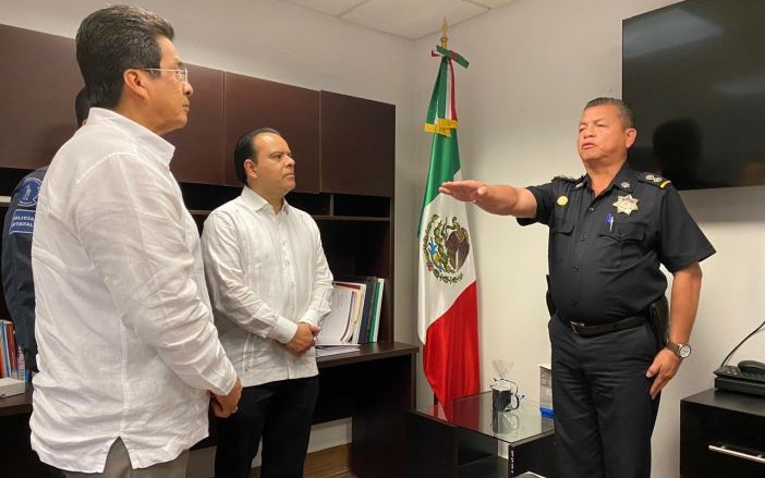 En presencia del Secretario de Gobierno, Marcos Rosendo Medina Filigrana, el Secretario de Seguridad y Protección Ciudadana, Ángel Mario Balcázar Martínez, le tomó la protesta de ley a quien le pidió desempeñar su nueva encomienda apegado a los principios que establece la Constitución Política del Estado y Libre y Soberano de Tabasco y las leyes que de ella emanen.