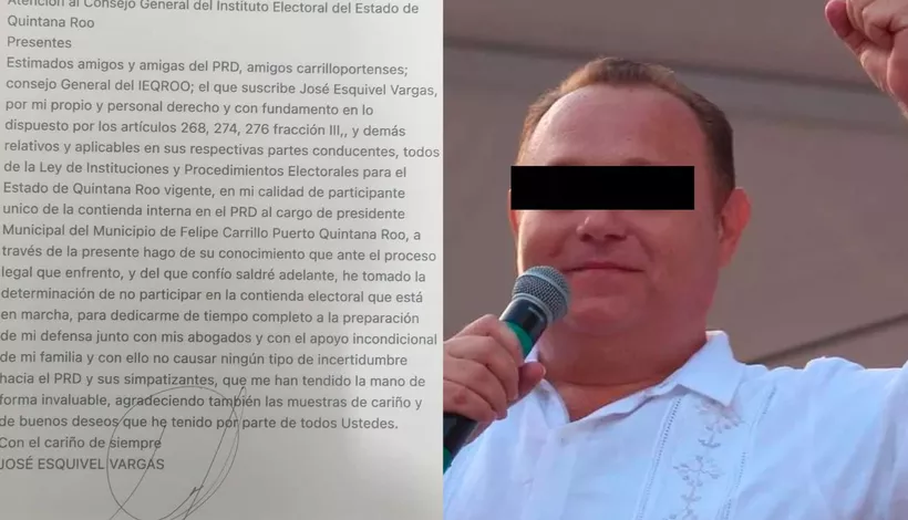 En el comunicado se puede leer que José Esquivel Vargas, citando los artículos correspondientes relativos y aplicables a las partes conducentes, así como a las de la Ley de Instituciones y Procedimientos Electorales para el Estado de Quintana Roo vigentes, como participante ha tomado la determinación de no participar en la contienda electoral para preparar su defensa junto a sus abogados.