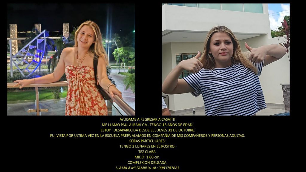 Tras su desaparición, sus familiares difundieron imágenes de la menor de nombre Paulina Irahí C. V., pidiendo apoyo a la ciudadanía para localizarla.