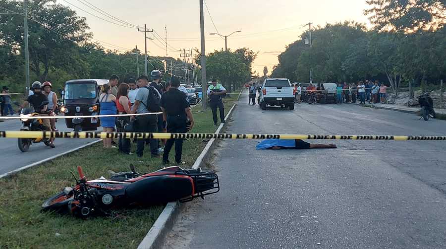Fue en ese lapso cuando una camioneta, que circulaba con dirección a la avenida Kabah, impactó severamente al joven motociclista, provocando que perdiera la vida en el lugar.