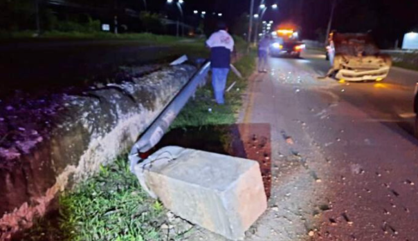 El reporte de los peritos refiere que el vehículo avanzaba de norte a sur sobre la citada vialidad cuando su conductor perdió el control hasta chocar con un poste de alumbrado público, que arrancó de su base, y terminó volcado.