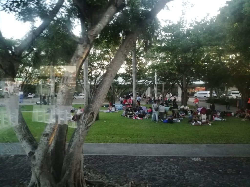 Cancún, Q. Roo, lunes 23 de marzo de 2020.- Jóvenes que residen en Cancún decidieron apoyar a los turistas que actualmente se encuentran varados en el Aeropuerto Internacional de esta ciudad.