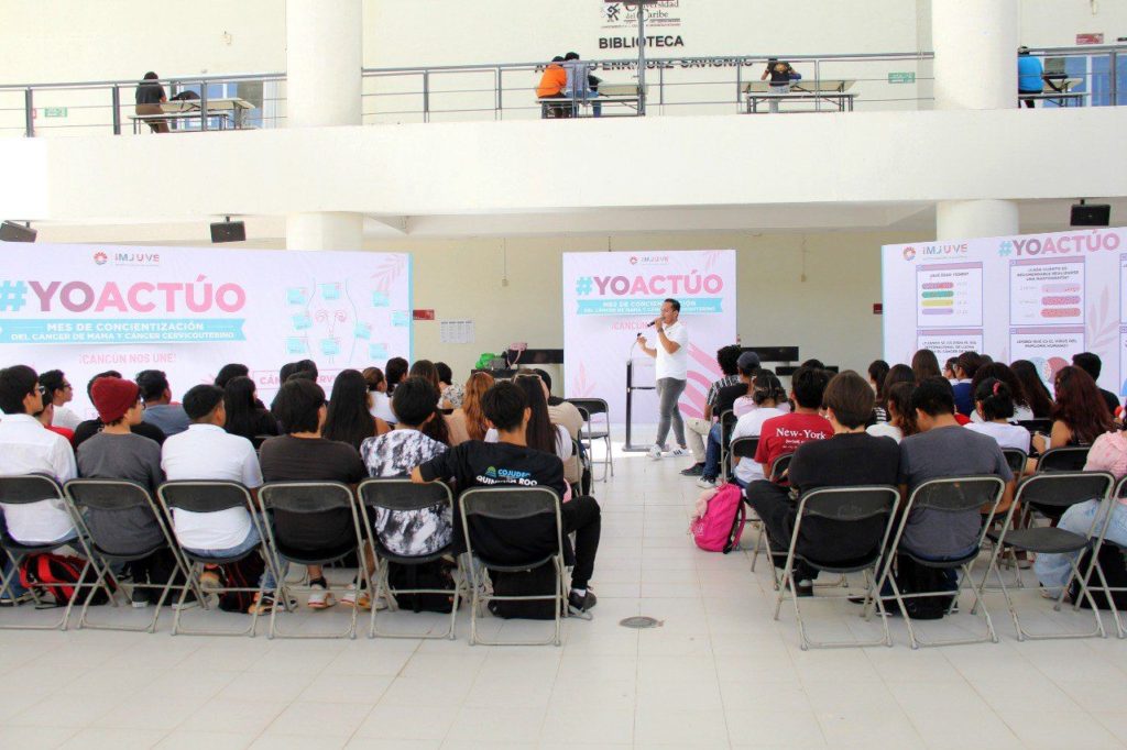 PODER Y CRÍTICA | REDACCIÓN | A fin de informar, sensibilizar y concientizar a las y los jóvenes cancunenses sobre el cáncer de mama, el Ayuntamiento de Benito Juárez, a través del Instituto Municipal de la Juventud (IMJUVE), realizó la actividad #Yoactúo como parte del “Mes de Sensibilización de Cáncer de Mama y Cervicouterino” en la Universidad del Caribe.