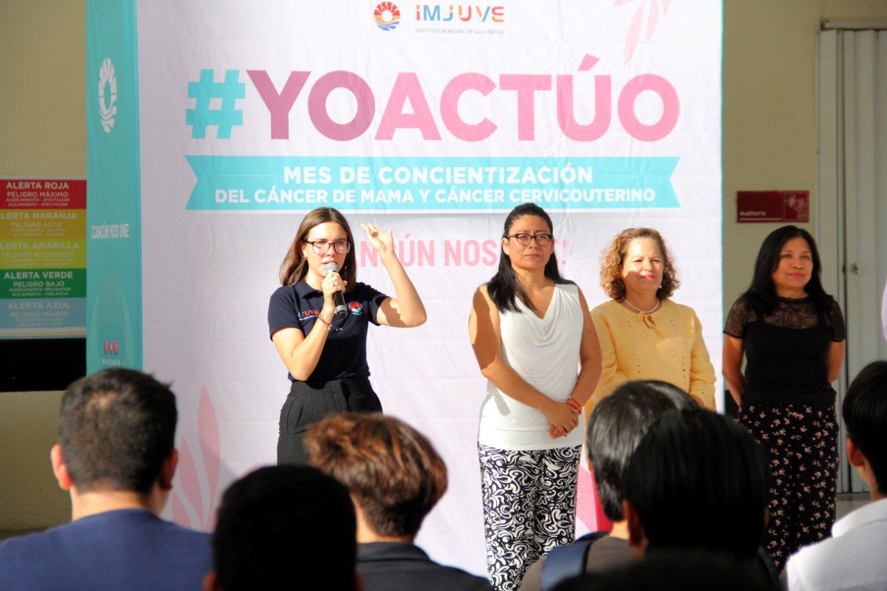 PODER Y CRÍTICA | REDACCIÓN | A fin de informar, sensibilizar y concientizar a las y los jóvenes cancunenses sobre el cáncer de mama, el Ayuntamiento de Benito Juárez, a través del Instituto Municipal de la Juventud (IMJUVE), realizó la actividad #Yoactúo como parte del “Mes de Sensibilización de Cáncer de Mama y Cervicouterino” en la Universidad del Caribe.