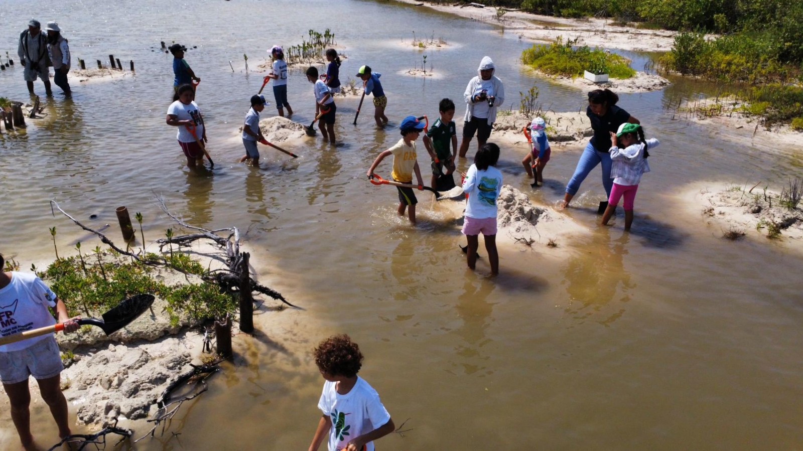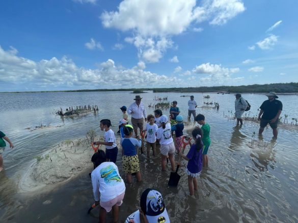 Igualmente, los infantes participaron en la reforestación en los islotes de dispersión de mangle, donde plantaron más de 70 propágulos de la especie Rhizophora mangle, dieron mantenimiento y limpiaron las áreas donde han insertado semillas con anterioridad, permitiendo observar y analizar el crecimiento y desarrollo de este ecosistema.