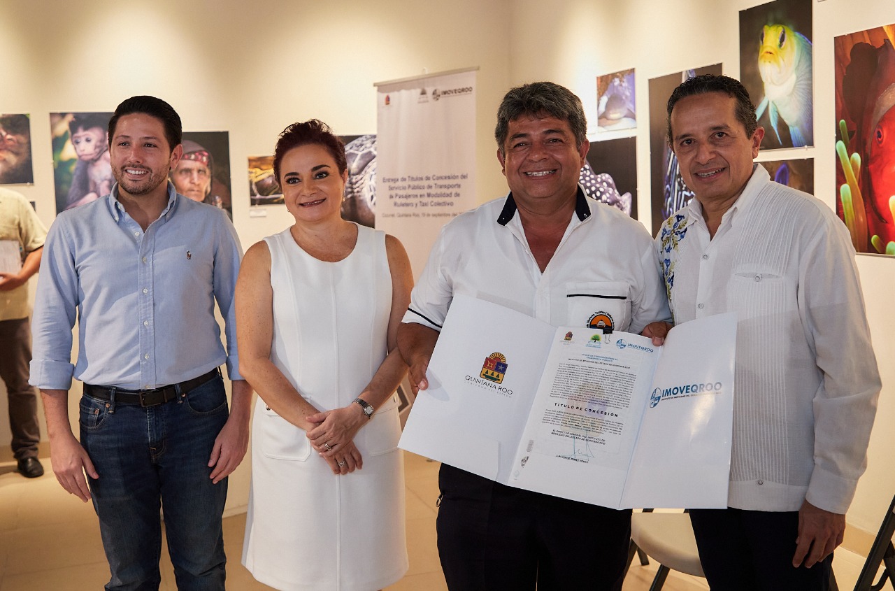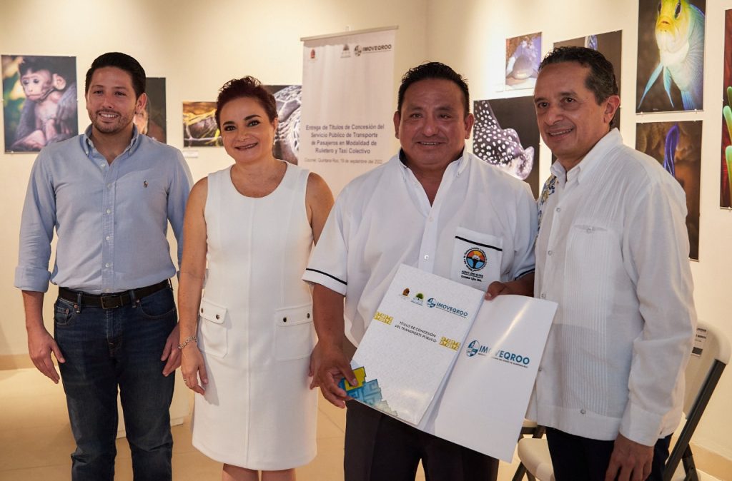 Cabe destacar que en esta entrega en la que también estuvo presente el secretario del Sindicato de Taxistas, Arturo Payán Tejero; el diputado local, Renán Sánchez Tajonar; el director del Instituto de movilidad de Quintana Roo (Imoveqroo), Jorge Pérez Pérez y el representante del gobernador del estado en Cozumel, Jesús Zetina Tejero, se llevó a cabo la entrega simbólica de las primeras concesiones que en total serán 71, de las cuales 60 corresponden al servicio de tipo “Ruletero” y 11 para el servicio “Colectivo taxista”.