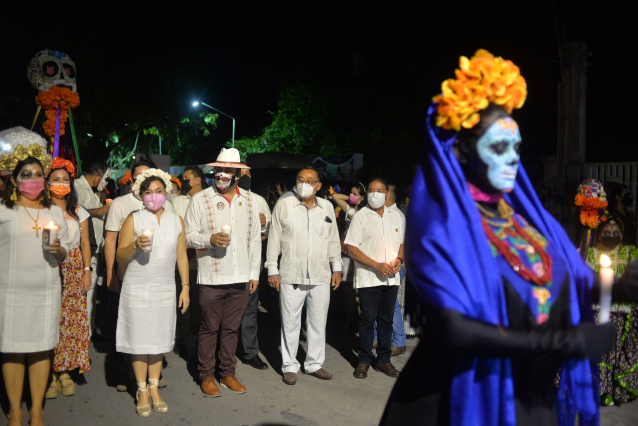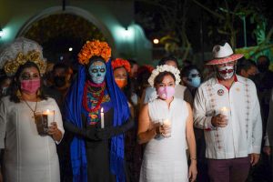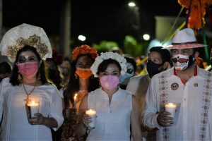 Cozumel, Q. Roo, Viernes 29 de Octubre de 2021, poderycrítica.- Con un ritual de flores, velas y música regional se llevó a cabo la inauguración del primer Festival de Día de Muertos “Almas con Tradición” que encabezó la presidenta municipal, Juanita Alonso Marrufo, en la que se realizó el “Encendido de Velas”, “Desfile de Ánimas” y actividades culturales en el parque Benito Juárez, las cuales se realizaron siguiendo los protocolos de salud.