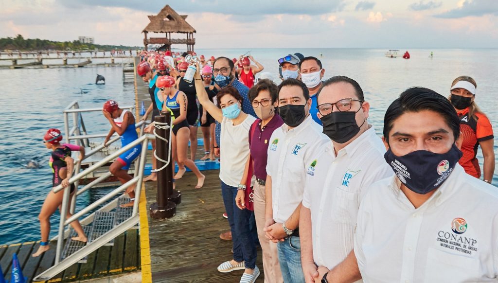 El delfinario del parque ecoturístico Chankanaab fue el lugar perfecto donde se dio la señal de salida para el inicio de las competencias deportivas, la cual estuvo a cargo de la presidenta municipal, Juanita Alonso Marrufo, en compañía de Emilio Villanueva Sosa y Rafael Guarneros y Puchades, presidente y director de la FPMC, respectivamente, así como por Fernando Alonso Orozco, director de la CONANP Cozumel; Pablo Aguilar Torres, representante del Consejo de Promoción Turística de Quintana Roo en la Isla; Badih Sleme Flores, director de Turismo y Desarrollo Económico y Rosa Zapata Vázquez, directora de Deporte y Atención a la Juventud municipal.