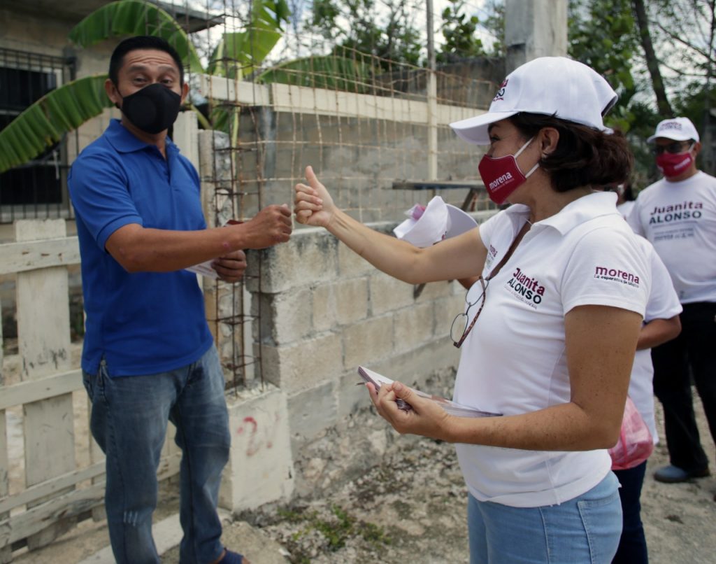 Cozumel, Q. Roo, lunes 24 de mayo de 2021, Poderycrítica.- La candidata a la presidencia municipal por la coalición “Juntos Hacemos Historia en Quintana Roo”, Juanita Alonso, ofreció resolver de fondo el problema de los asentamientos irregulares conocidos como San Fernando y San Lorenzo.