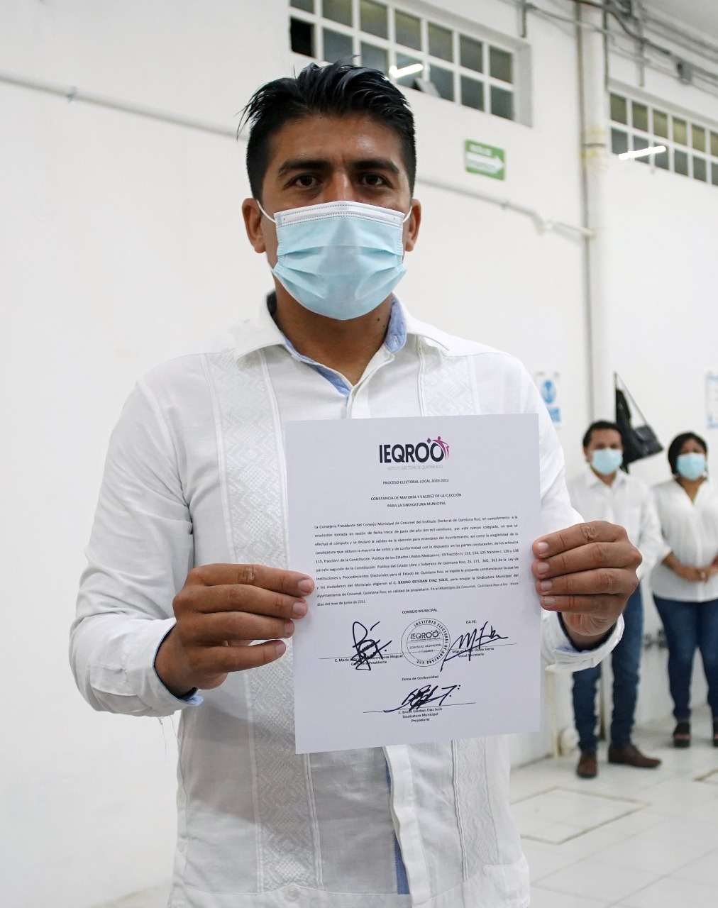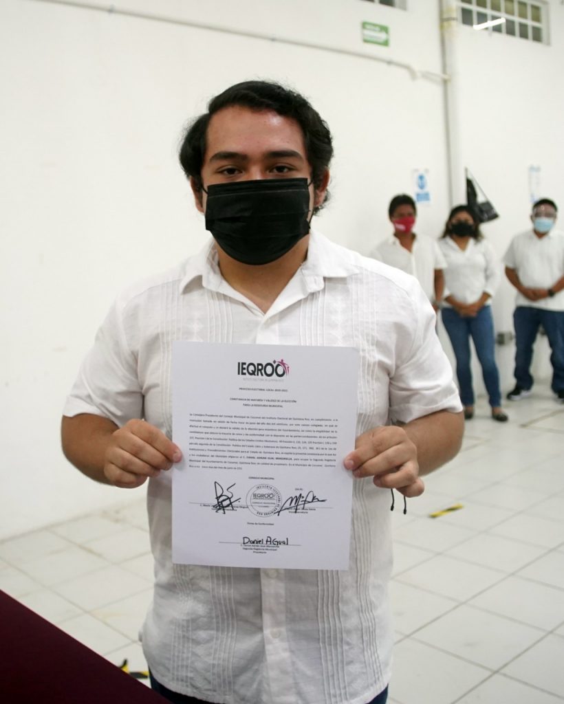Por lo tanto recibieron su constancia, María Guadalupe Sánchez Martínez, como suplente de la Presidente Municipal; como Síndico, Bruno Díaz e Irving Josué Carrillo Pacheco, titular y suplente, respectivamente; Primera Regiduría corresponde a Ángela del Socorro Carrillo Chulin titular e Irma Noemí Tun Celis, suplente; Segunda Regiduría, Daniel Adrián Gual Manzanilla titular, Joaquín Antonio González Estrada, suplente; Tercera Regiduría, Fabiola Aislinn Chávez Brito, titular, Nery Angélica Hoil Tzuc, suplente; Cuarta Regiduría, Juan Carlos Góngora Aké, titular, Martín Luna Álvarez, suplente; Quinta Regiduría, Genny Aracely Martínez Koh, titular, Jenny Elina Bermont Sánchez, suplente; Sexta Regiduría, Pedro Francisco Centeno Ku, titular y Roque Alejandro Dzul Cetzal, suplente.