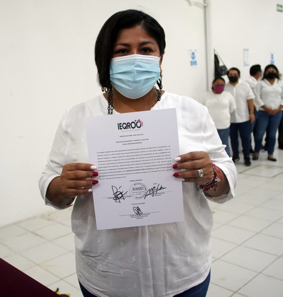 Cozumel, Q. Roo, miércoles 23 de junio de 2021, poderycrítica.- Este martes por la noche, en las instalaciones del IEQROO, la Presidenta Municipal electa de Cozumel, Juanita Alonso, presenció la entrega de Constancias de Mayoría a los concejales, así como a los suplentes electos.