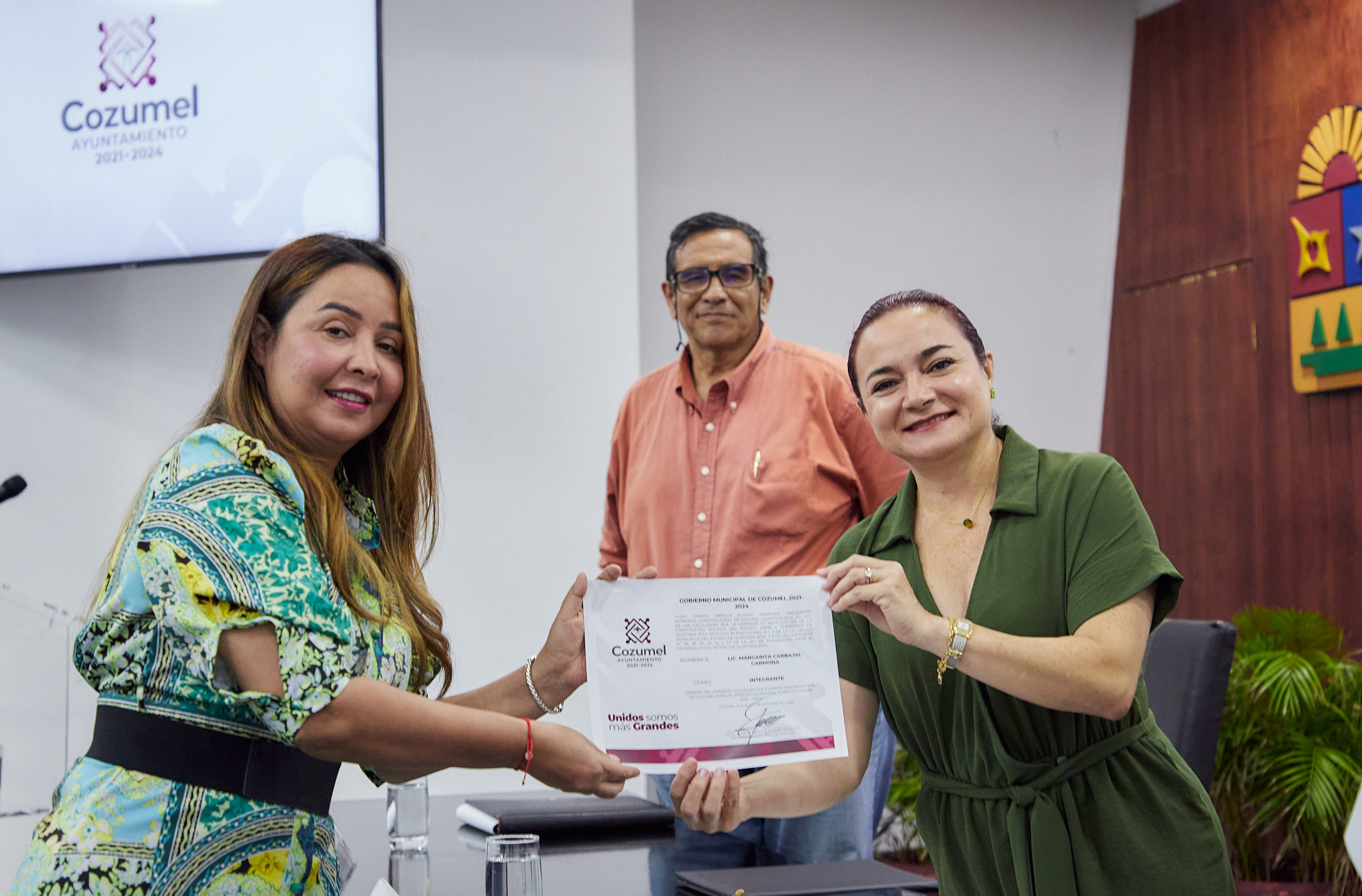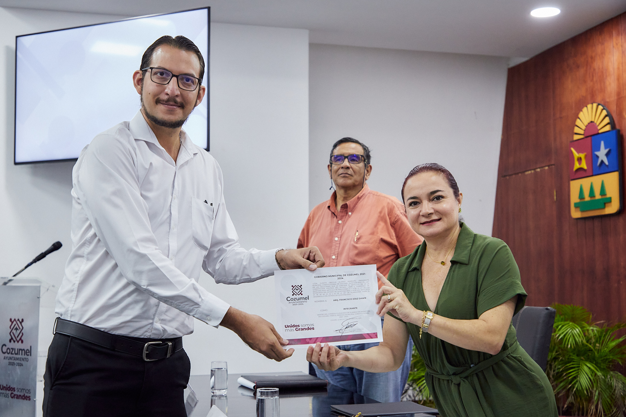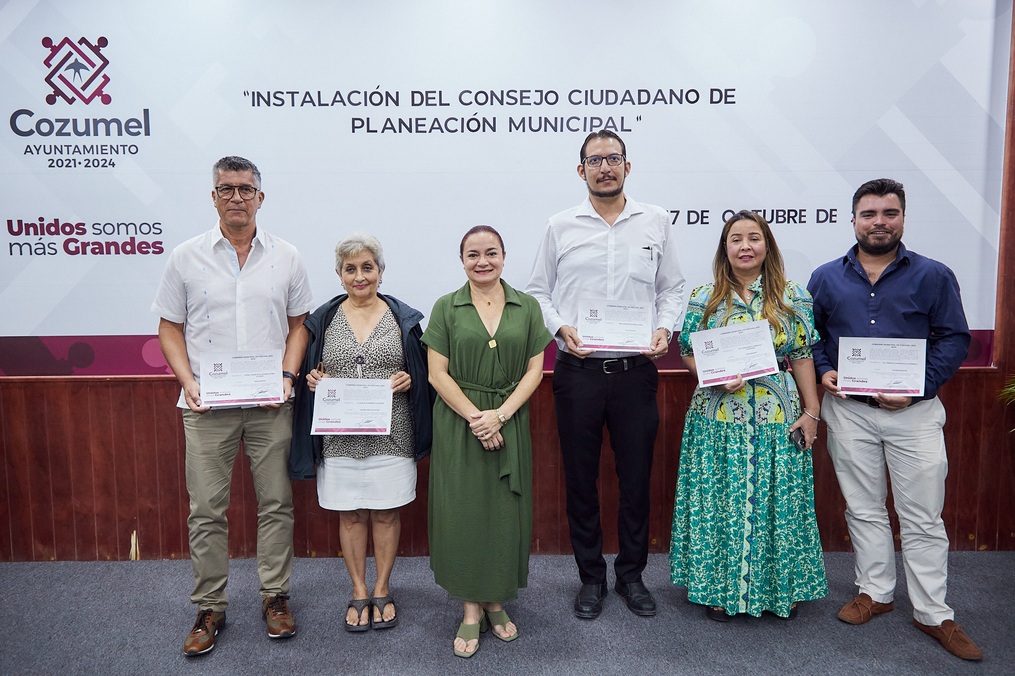 Como parte de este evento la presidenta municipal, Juanita Alonso Marrufo, tomó protesta a este Consejo integrado por Francisco Javier Pizaña Alonso, presidente del Consejo ciudadano de planeación municipal de Cozumel para el periodo constitucional 2021-2024; Franco González Alcérreca, coordinador del consejo; Cecilia Alcérreca Joaquín, secretaria de actas; Margarita Carbajal Carmona y Francisco Díaz Dawn, integrantes del consejo, a quienes se les entregó sus respectivas constancias.