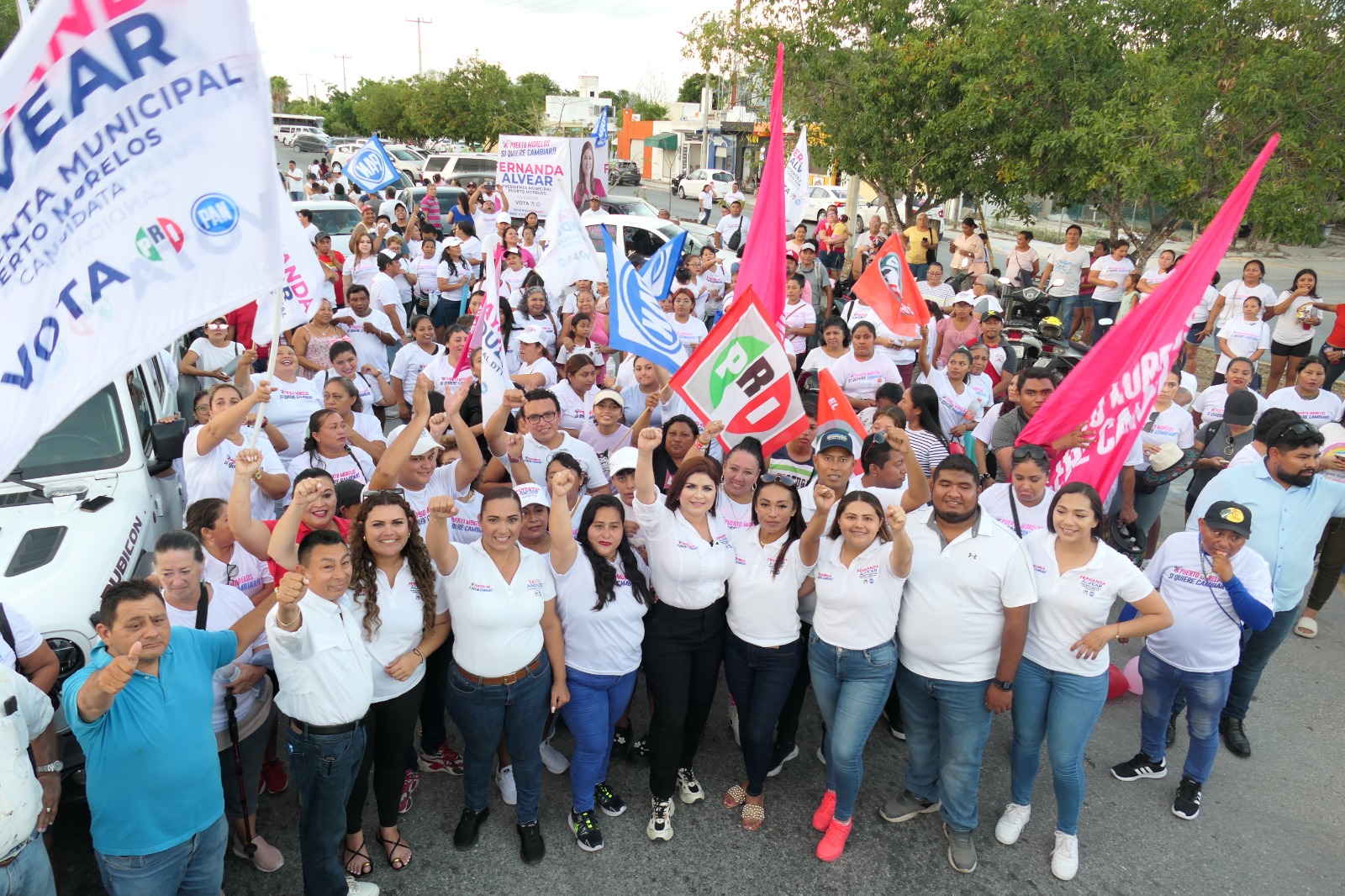 La abanderada del PRI y el PAN encabezó el primero de sus dos cierres de campaña, en el deportivo «Isaac Hamui» frente a ciudadanos que la acompañaron en una caravana integrada por un centenar de vehículos. En presencia de Saydi Anduze, candidata a diputada y de Candy Ayuso, legisladora priísta; Fernanda Alvear dijo que Puerto Morelos estrenará alcaldesa, que realmente quiere ver al municipio de paz, desarrollo y prosperidad como es el anhelo de todos los que elegimos esta tierra para nuestras familias», subrayó en presencia de sus hijos María Paula y Juan Pablo, portomorelenses de nacimiento.