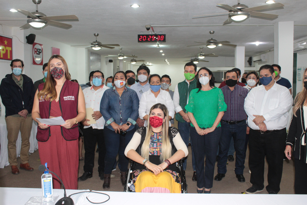«Hoy fue aprobado de manera unanimidad por parte de las y los consejeros del Instituto Electoral de Quintana Roo, el registro de la coalición parcial integrada por nuestro partido MORENA; así como por el Partido Verde de México, el Partido del Trabajo y el Movimiento Auténtico Social; que nos permite competir en unidad en el proceso electoral», afirmó.