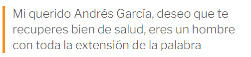 “Ahora resulta que tengo cirrosis, ahora tomo agua de limón, pero tráete la tanga […] Esto es una catástrofe, yo estoy confundido, si no hubiera sido por Margarita [su esposa] no sé qué hubiera hecho. Yo en realidad te quiero decir algo, yo no me había dado cuenta del tipo de mujer tan buena que yo tenía”, comentó.