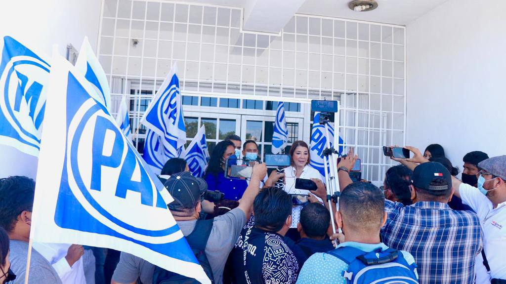 La todavía diputada local y su suplente Dana Ramírez Saldaña ,acudieron a las 11 horas de este sábado 26 de febrero del año en curso, a las oficinas del PAN en Chetumal, para hacer el registro, entregando la documentación correspondiente a los integrantes de la Comisión Organizadora Electoral, integrada por Hiram Pérez Cervera, Rocío Gordillo y Patricia Carilio Zepeda como presidenta.