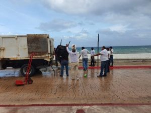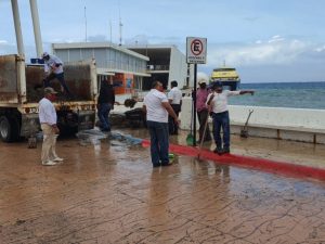 El trabajo se está haciendo en coordinación con la Zona Federal Marítimo Terrestre (ZOFEMAT), dirigida por Ricardo Lizama Escalante, para retirar las macroalgas que el mismo oleaje ha introducido a las inmediaciones del recinto portuario.