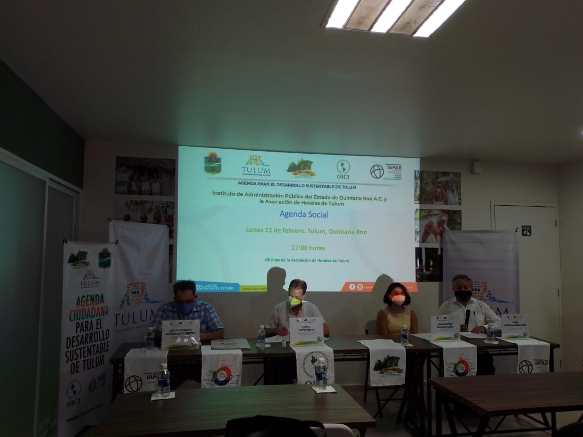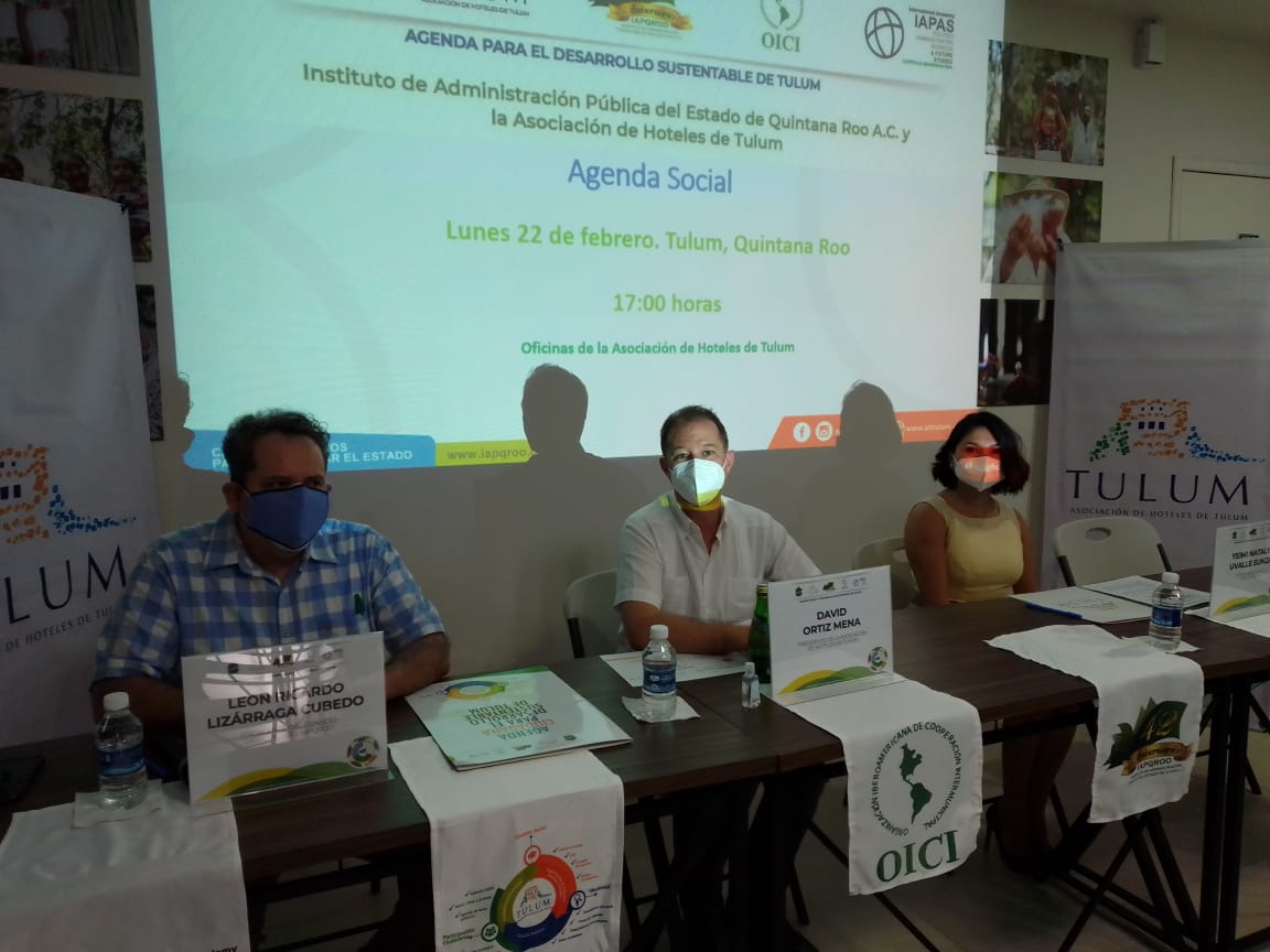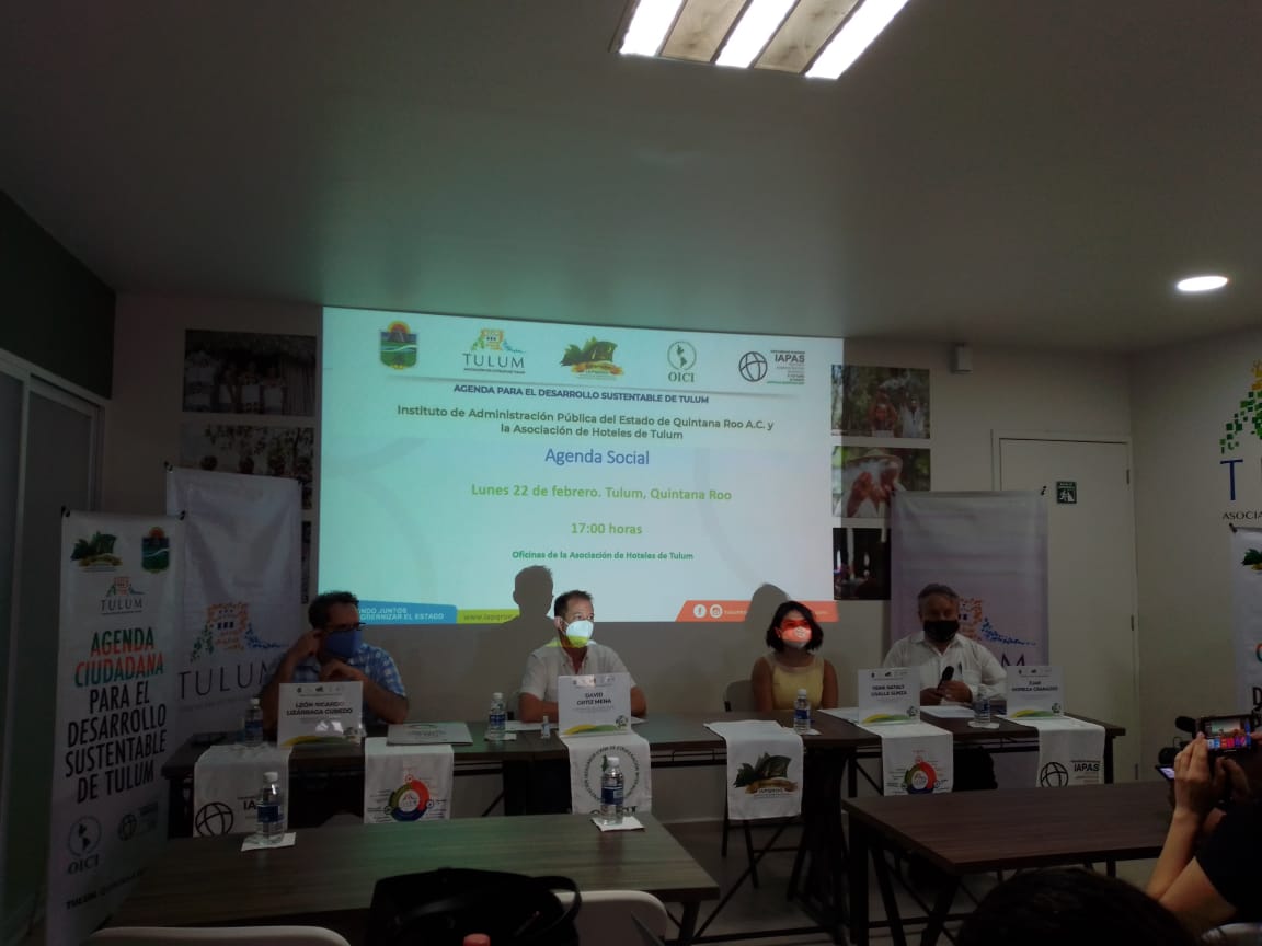 Por su parte, León Lizárraga Cubedo explicó por medio de un monitoreo que realiza el IAPQROO de los problemas públicos, pueden tener los temas que aborda la Agenda para el Desarrollo Sustentable de Tulum, donde una es la Agenda Social que incluye salud, educación, vivienda, adultos mayores, los valores, indígenas, derechos humanos, ecología, economía, entre otros.