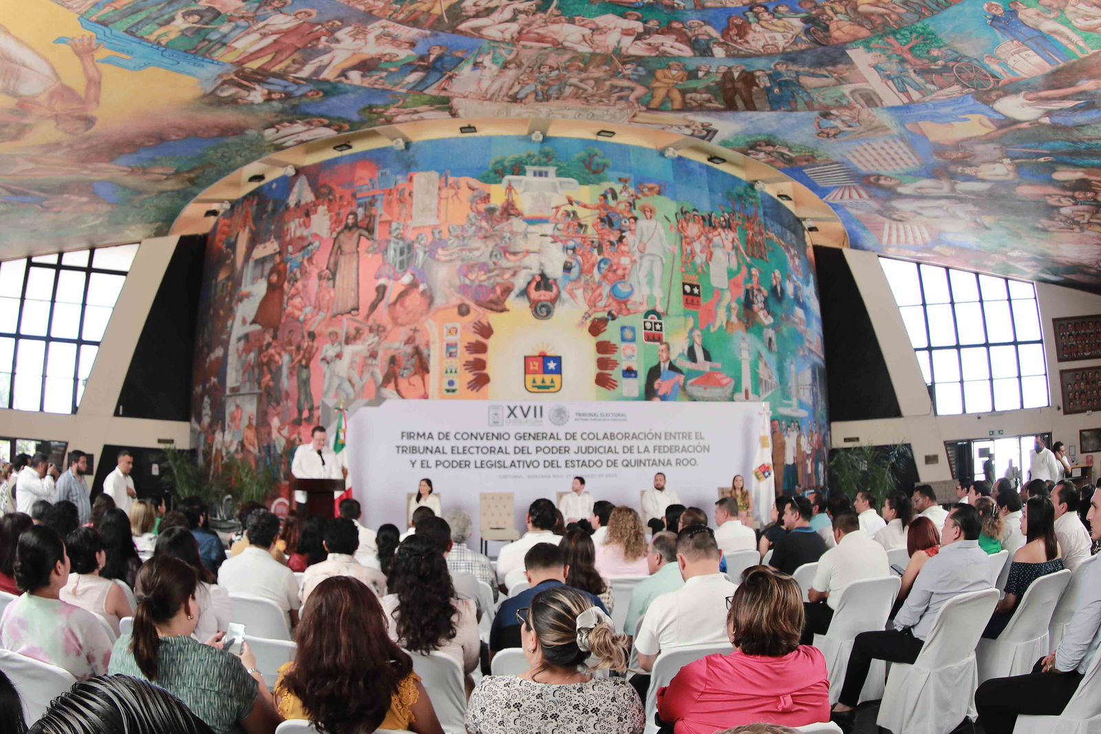 La firma de este convenio estuvo a cargo del diputado Renán Sánchez Tajonar, presidente de la Junta de Gobierno y Coordinación Política (JUGOCOPO), el magistrado de la Sala Superior del Tribunal Electoral del Poder Judicial de la Federación (TEPJF) Felipe de la Mata Pizaña y la Dra. Gabriela Dolores Ruvalcaba García, directora de la Escuela Judicial Electoral.