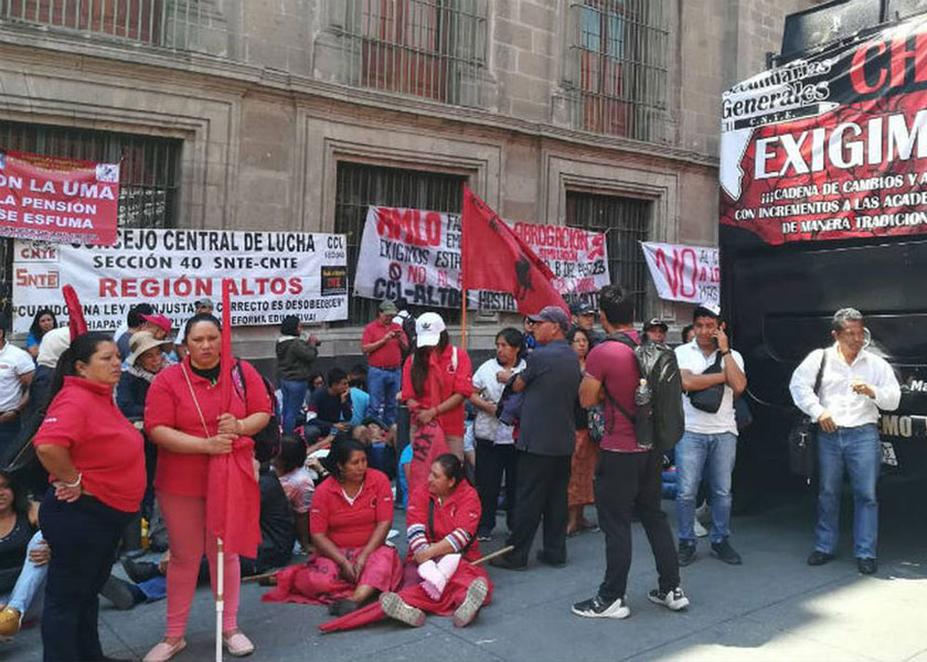 México, 18 marzo; poderycritica.-La CNTE solicitó mil 200 millones de pesos al Gobierno federal para el pago de salarios atrasados y de incidencias, pues señaló que a un año de que comenzaron la negociación no se han cumplido con todos los pagos derivados de las siete mesas de trabajo. Los integrantes de la CNTE bloquearon los accesos de Palacio Nacional, por calle de Moneda, como medida de presión para que el gobierno del Presidente Andrés Manuel López Obrador atienda sus demandas.