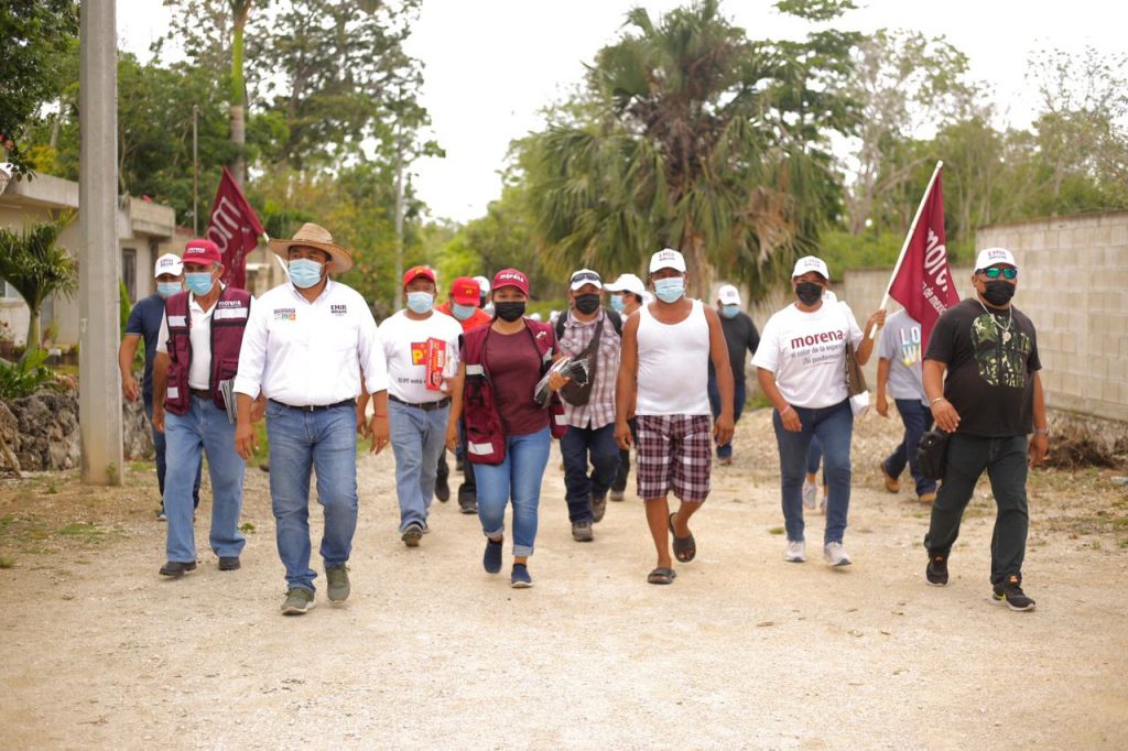 Kantunilkín, Quintana Roo a 21 de mayo del 2021, poderycritica.- Sin descanso alguno continúa el candidato de la coalición «Juntos Hacemos Historia» Emir Bellos, caminando por las calles de las comunidades, en esta ocasión recorrió la de Benito Juárez acompañado de su planilla y militantes.