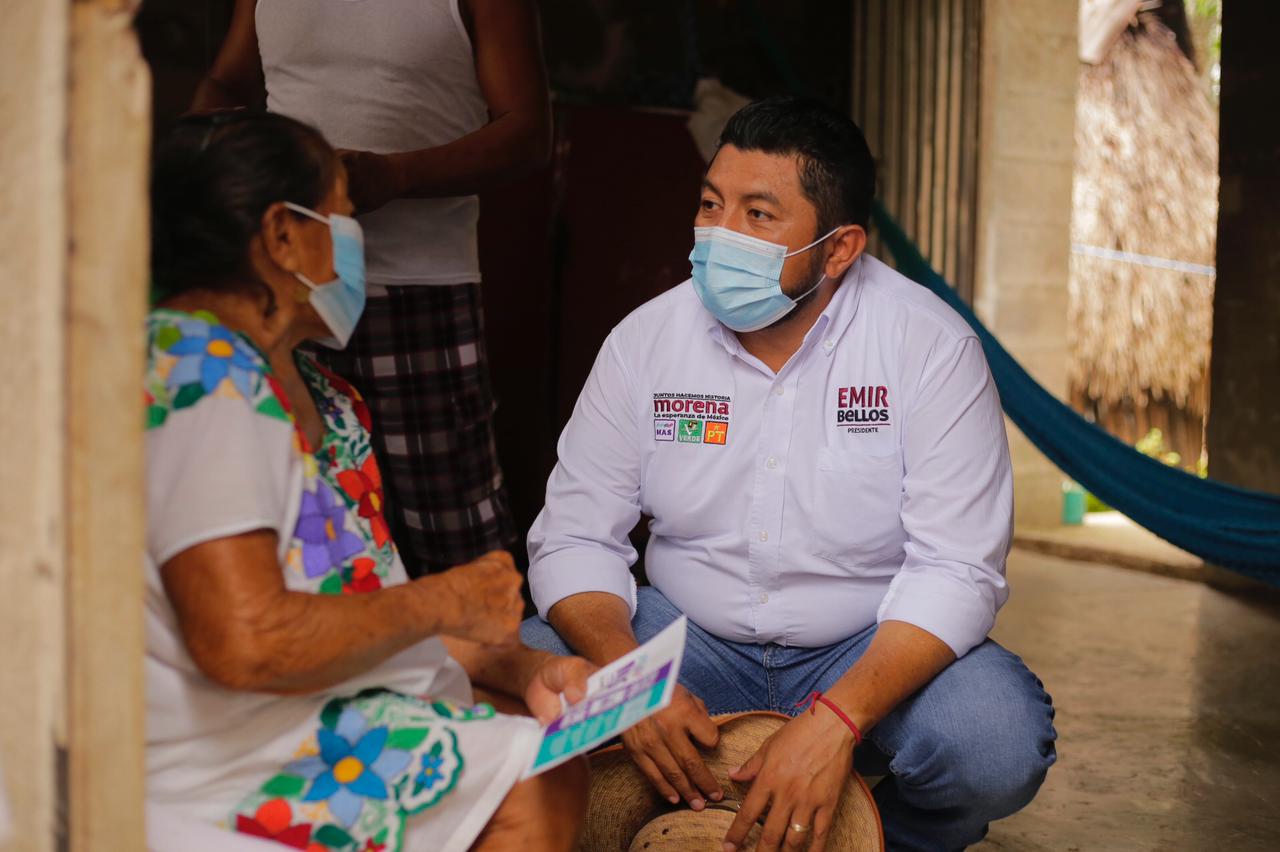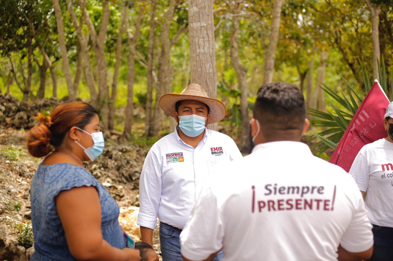 Kantunilkín, Quintana Roo a 21 de mayo del 2021, poderycritica.- Sin descanso alguno continúa el candidato de la coalición «Juntos Hacemos Historia» Emir Bellos, caminando por las calles de las comunidades, en esta ocasión recorrió la de Benito Juárez acompañado de su planilla y militantes.