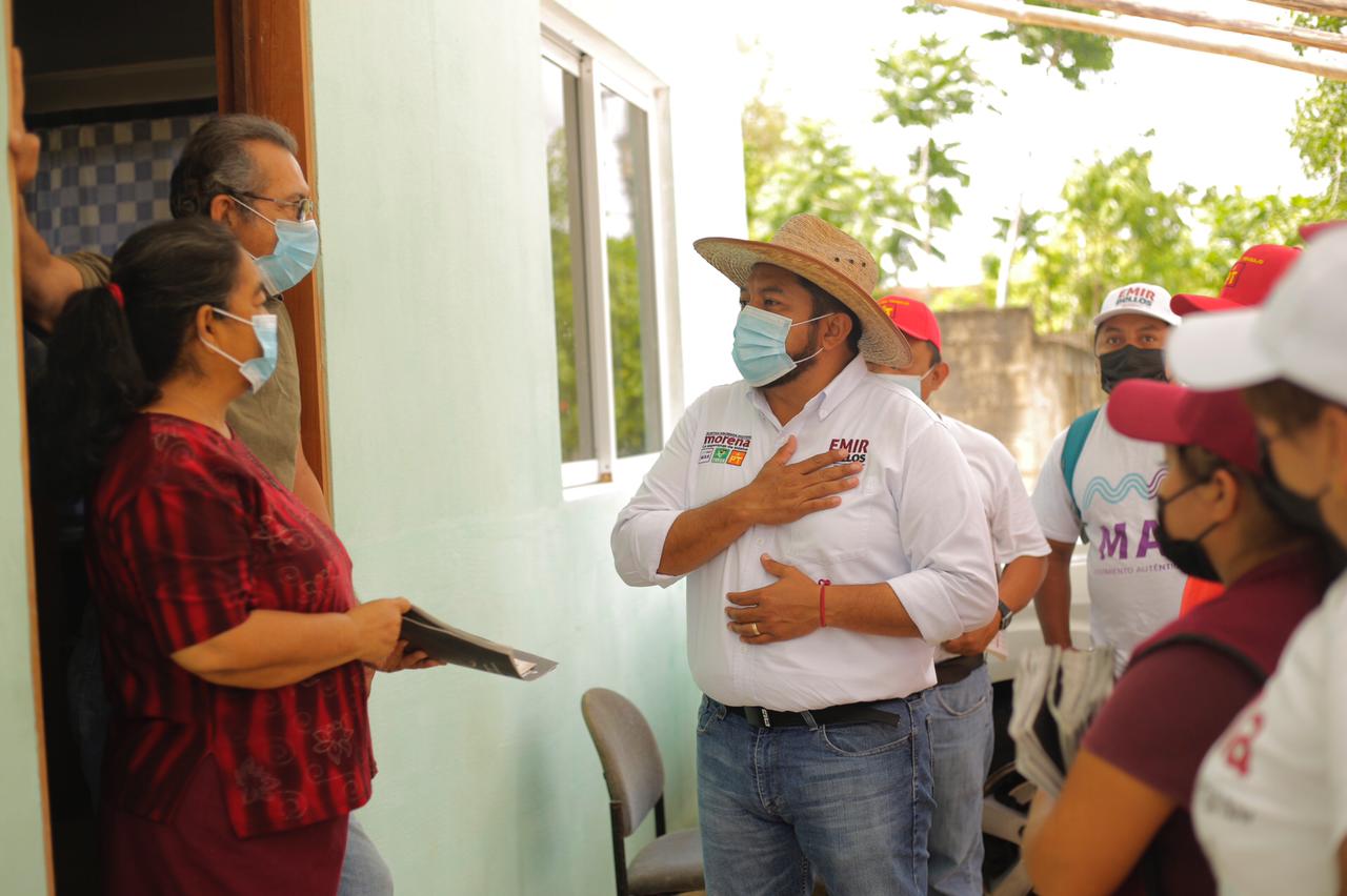 Emir Bellos no se detuvó y siguió tocando puertas como lo ha hecho desde el día uno de campaña, el acercamiento directo al visitar casa por casa le ha permitido que más familias lo reciban en sus hogares y la gente se sume al proyecto que respalda su coalición.