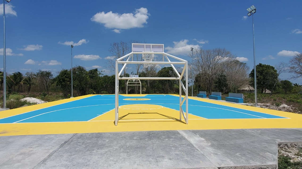 Especificó que se realizó la construcción de una cancha de usos múltiples, la colocación de 4 piezas de luminarias tipo reflector de 400w, colocación de 5 piezas de luminarias de alumbrado público tipo led, construcción de bancas dobles, bancas sencillas, rampas para personas con discapacidad y el servicio de internet satelital por un periodo de 2 años.