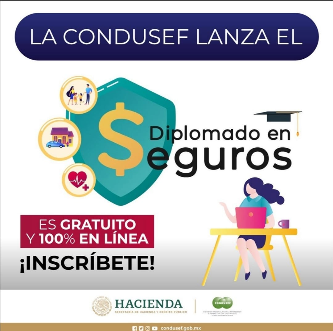 Ciudad de México,  Martes 03  Agosto de 2021, poderycrítica.-  La Comisión Nacional para la Protección y Defensa de los Usuarios de Servicios Financieros (CONDUSEF), convoca a todo el público a partir del nivel bachillerato a ser parte de la primera generación del Diplomado en Seguros gratuito y 100% en línea.