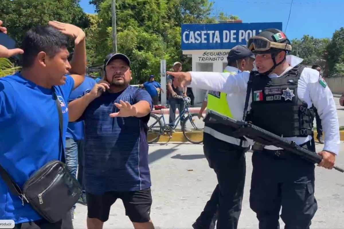 De acuerdo con testigos, el conflicto inició cuando un operador fue retenido junto con su unidad, presuntamente por no contar con los permisos necesarios para transitar en la zona. El trabajador pidió apoyo a sus compañeros, quienes arribaron de inmediato, lo que derivó en una discusión con los uniformados.