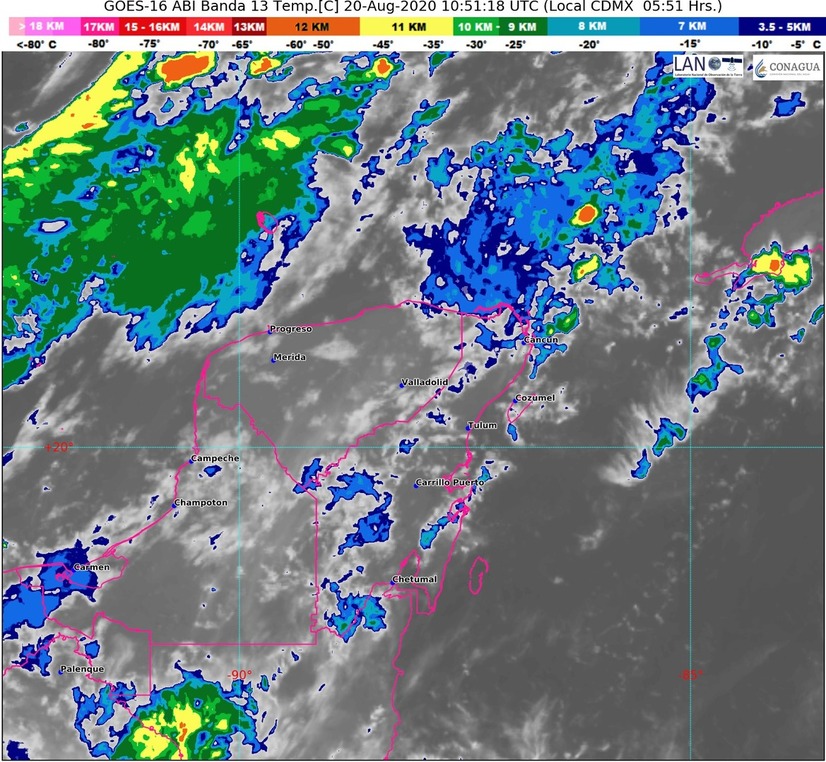 El Servicio Meteorológico Nacional ubica este fenómeno a poco menos de mil kilómetros al este-sureste de Cancún, Quintana Roo; se desplaza a 33 kilómetros por hora con vientos sostenidos de 55 km/h y rachas de 75 km/h.