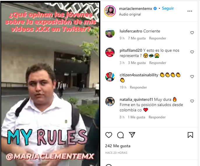 Sin embargo, afirmó que siempre apoyará a las mujeres trans y respetará sus decisiones y actitudes, tras los videos de carácter sexual que la diputada María Clemente García Moreno publicó en su cuenta de Twitter.