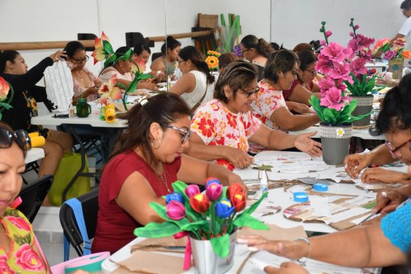 PODER Y CRÍTICA | REDACCIÓN | La Fundación de Parques y Museos de Cozumel (FPMC) dio inicio al taller gratuito de manualidades “Manos Creativas” con la participación de 20 alumnas, quienes a lo largo de una semana aprenderán a elaborar decoraciones para el hogar o arreglos florales a base de foami y cartón, que pueden vender para obtener ingresos que apoyen a su economía familiar.