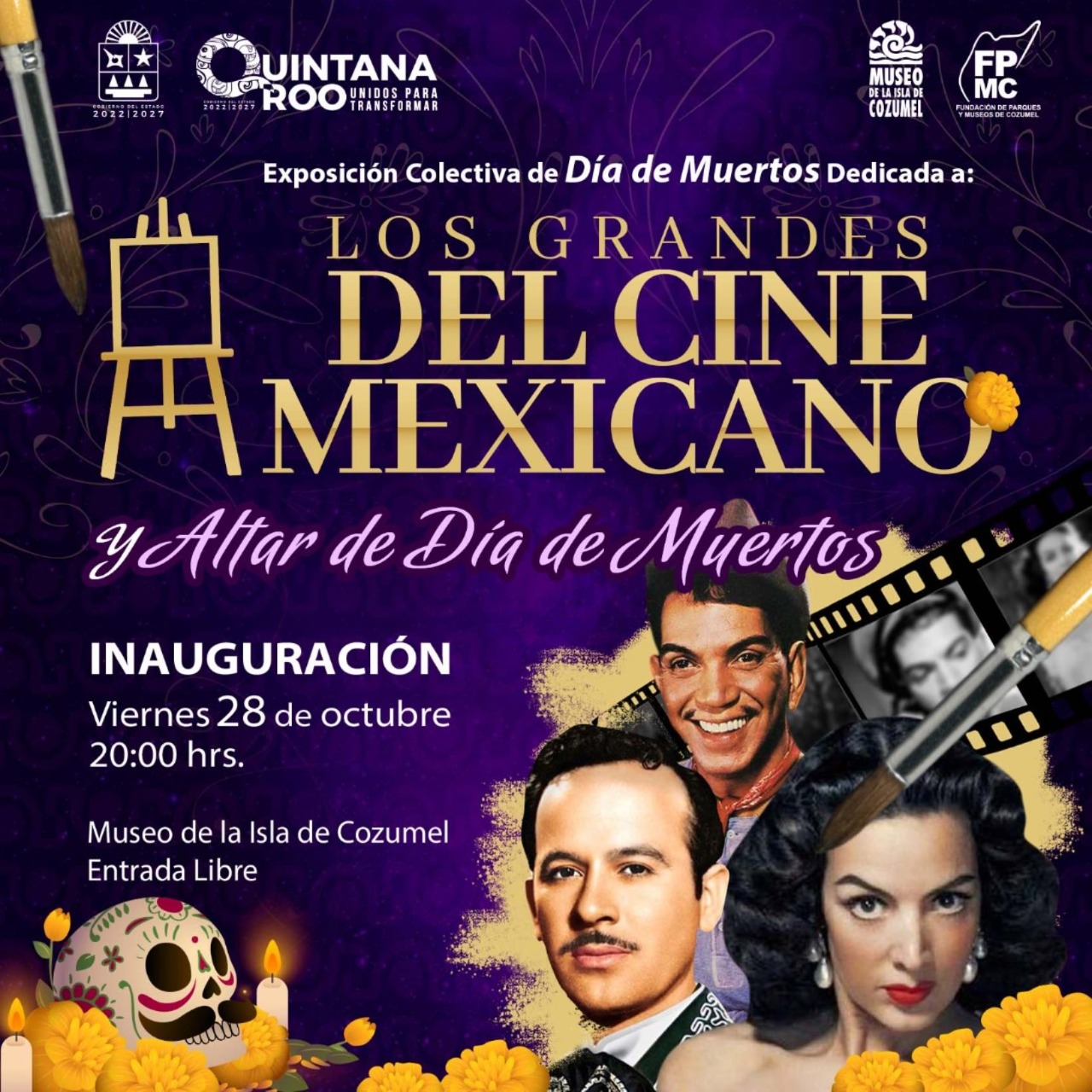 PODER Y CRÍTICA | REDACCIÓN | Como una forma de mostrar, promover y difundir la íntima relación que existe entre la tradición del Día de Muertos y el arte mexicano, la Fundación de Parques y Museos de Cozumel (FPMC) inaugurará el 28 de octubre a las 20 horas, la exposición colectiva “Los Grandes del Cine Mexicano” y del pintor Carlos Tello, “Prefiero morir borracho para no sentir tan gacho”, así como el altar dedicado a los difuntos, en el Museo de la Isla.