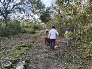 Debido a que la zona arqueológica de San Gervasio se encuentra en medio de la selva, entre grandes árboles, follaje y flores, fue necesario realizar un trabajo exhaustivo de limpieza, toda vez que el huracán “Zeta”, que afectó a la Isla el 26 de octubre, trajo consigo fuertes vientos que provocaron la caída de algunos árboles, arbustos y ramas que tuvieron que ser retirados durante los siguientes días.