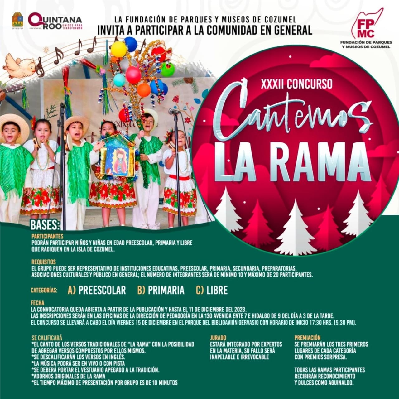 PODER Y CRÍTICA | REDACCIÓN | Para preservar las tradiciones mexicanas durante las festividades decembrinas, la Fundación de Parques y Museos de Cozumel (FPMC) convoca a participar en el XXXII concurso “Cantemos La Rama”, que se efectuará el próximo 15 de diciembre, en el BiblioAvión Gervasio, a las cinco y media de la tarde.