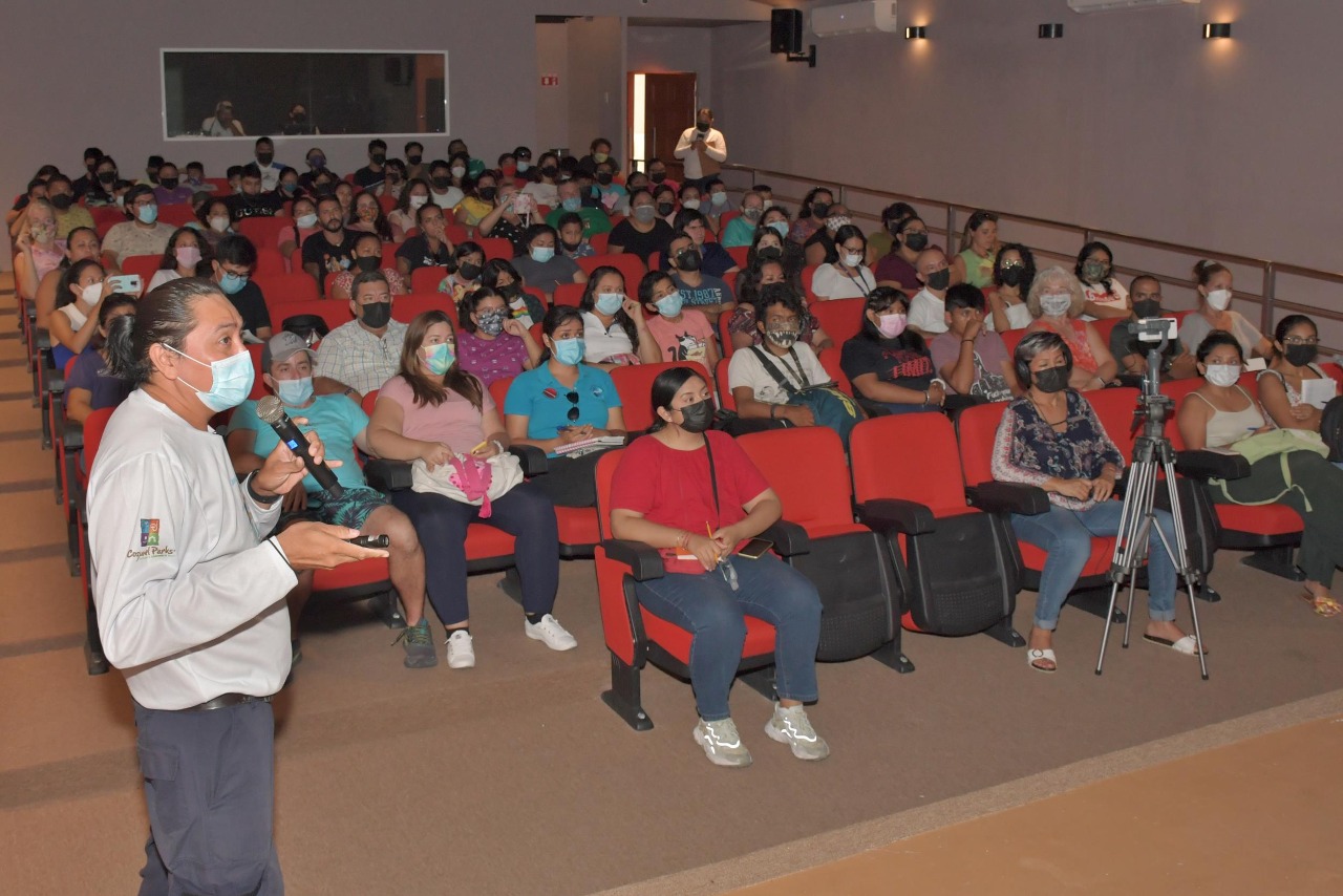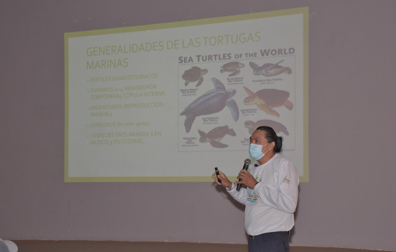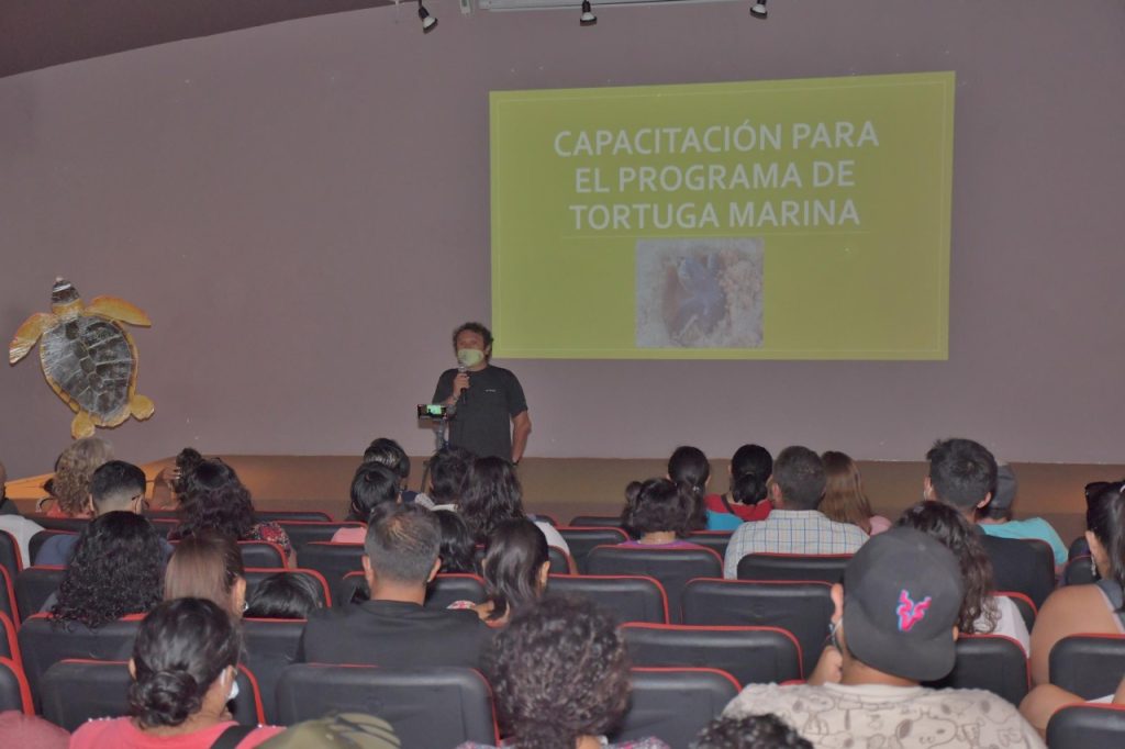 PODER Y CRÍTICA | REDACCIÓN | Con el objetivo que los voluntarios que participarán en el “Programa de Conservación de la Tortuga Marina 2022” adquieran los conocimientos necesarios para cuidar el medio ambiente y a los quelonios que anidan o eclosionan en el Campamento Tortuguero Punta Sur, la Fundación de Parques y Museos de Cozumel (FPMC) llevó a cabo una plática informativa en el Museo de la Isla en la que participaron 98 personas