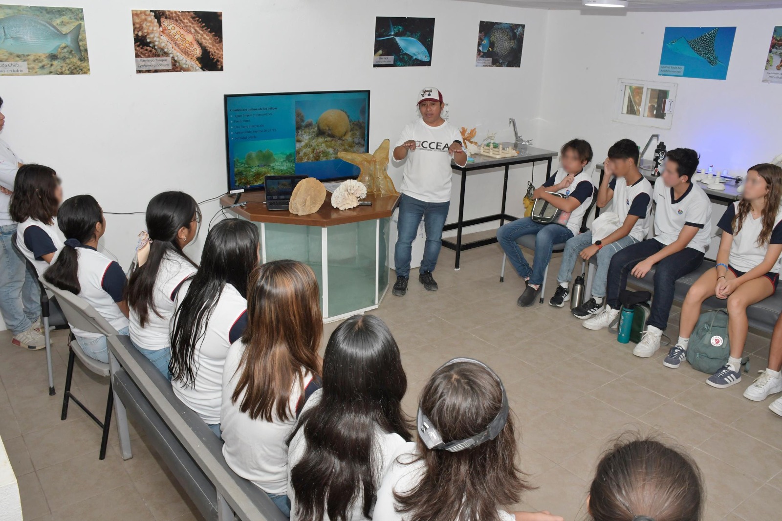 Explicó que, durante la jornada de actividades, los biólogos y manejadores de recursos naturales de la Dirección de Conservación y Educación Ambiental (CEA) explicaron a los y las alumnas, algunos de los principales programas permanentes que realiza la FPMC, entre los que se encuentran: la observación de aves, monitoreo de tortuga marina y de murciélagos; restauración del ecosistema coralino, identificación de peces arrecifales y de polinizadores, entre otros.