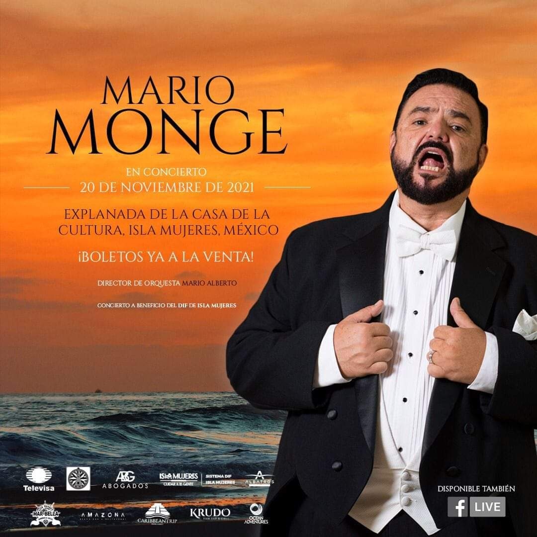 Teniendo las aguas azul turquesa y la brisa del Mar Caribe como marco, el tenor Mario Monge se presentará en Isla Mujeres, acompañado de la concertista Isabel Mesa Vega, del ensamble de cuerdas de Cancún y del Mariachi Sabor a México, como parte de la «Gran Gala de Ópera».